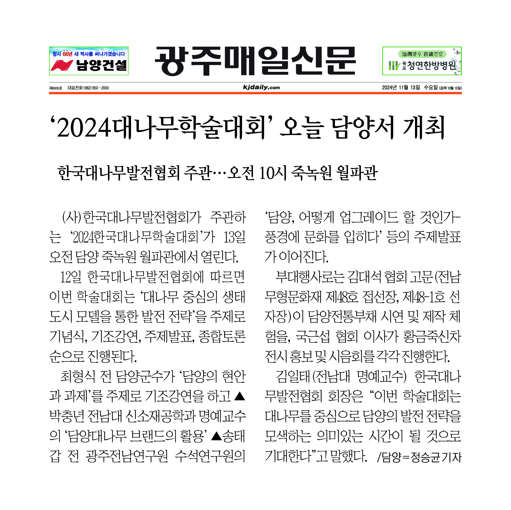 (»ç)Çѱ¹´ë³ª¹«¹ßÀüÇùȸ°¡ ÁÖ°üÇÏ´Â ¡®2024Çѱ¹´ë³ª¹«Çмú´ëȸ¡¯°¡ 13ÀÏ ¿ÀÀü ´ã¾ç Á×³ì¿ø ¿ùÆÄ°ü¿¡¼ ¿¸°´Ù.